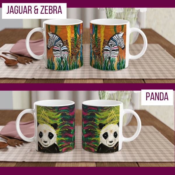 If you like many of my spirit animal paintings and would like to have them with you at all times, we recommend these coffee and tea mugs with prints of my originals.